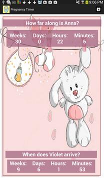 Pregnancy Timer has a highly customizable interface that shows you both a count up from conception and a count down to the due date, a vegetable that is close to your baby's size every week, and a drawing of what a baby looks like every month.