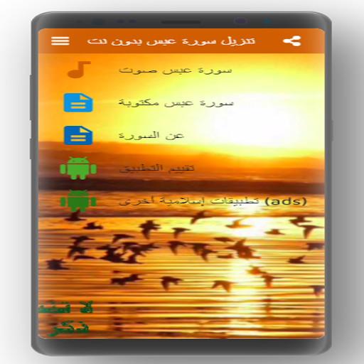 Sura Abs without net is an application that includes one of the walls of the Quran where it included the application in its content on many features where you can listen to the voice and read Sura Abs written as you can by the application learn quran without net so you can now listen to it in the voice maher al-Maaqi mp3 as the application is comprehensive on the recitation of the recitation of the recitation and hymn sura abs voice to increase your Islamic culture and as the application is easy to use