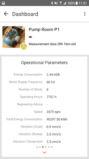 With this App and ABB’s smart monitoring solution you can use your phone to check the health condition of your motors, bearings and pumps at any time.