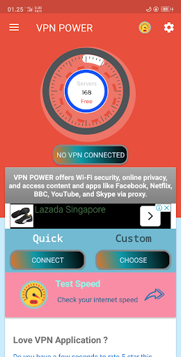 VPN POWER is a lightning-fast app provide free VPN proxy service. Not need any configuration, just simply click one button, you can access the Internet securely and anonymously.