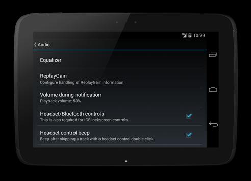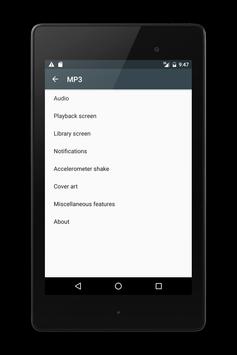 * Settings for Audio, Playback Screen, Library Screen, Notifications, Accelerometer Shake, Cover Art, and Miscellaneous Features.
