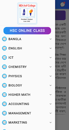 This is an educational app. This app build mainly for maintaining online class. All classed will added automatically. In this app cover all subjects of HSC batch.