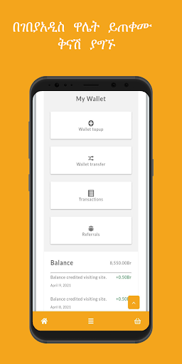 አካውንት ሲከፍቱ የገበያአዲስ ዋሌት ይኖሮታል፡ ዕቃዎችን በሚገዙበት ጊዜ ዋሌትዎ ላይ Bonus ያገኛሉ እንዲሁም መጀመሪያ አካውንት ሲከፍቱ፣በየቀኑ መተግበሪያችንን ሲጎበኙ እንዲሁም ዋሌት ውስጥ ገብተው Referrals ውስጥ ገብተው የእርሶን ሊንክ ኮፒ በማድረግ ለወዳጆት ሲያጋሩ እና ወዳጆችዎ አካውንት ሲከፍቱ እርሶ Bonus ያገኛሉ። እንዲሁም ከዋሌትዎ ለሌላ ሰው ማስተላለፍ እና ወደ ዋሌትዎ ገንዘብ በማስገባት በማንኛውም ጊዜ እና ሁኔታ ከዋሌትዎ በመክፈል ማዘዝ ይችላሉ።