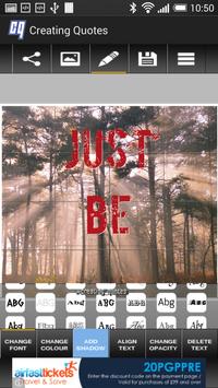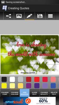 Creating Quotes is the easiest way to make your own quotes using images from your camera roll right on your phone. Quick, fun and easy. The easiest quote maker on Android. Save and share with friends.