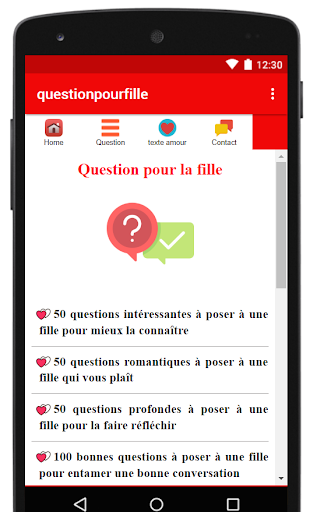 Description of Question a poser a une fille