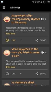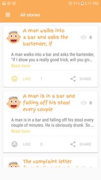 A very large collections of funny, joke stories. With a simple design and always to refresh stories, we strongly believe that you will never feel bored when using our app.