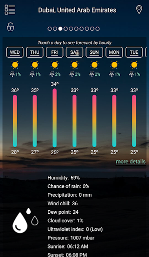 ◉ Twice daily notifications help you to be prepared, whatever the weather. If you don't like it you can turn off this feature.