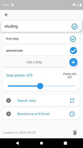 You can add reminders, steps and points to every goal, then you can keep tracking your achievement weekly by submitting how much did you achieve.