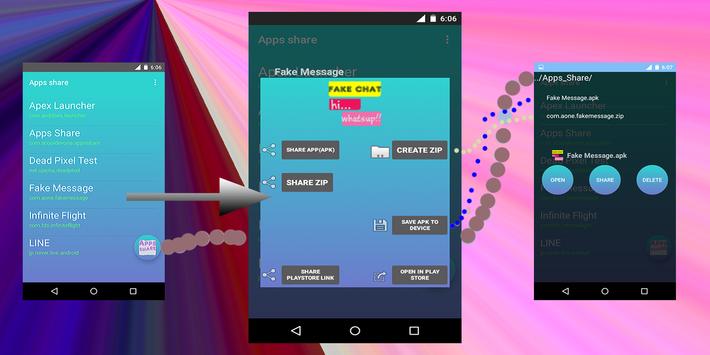 Fast and the easy way of sharing apps with Bluetooth Features:- *share apps (apk) play store link *create apk (back up) *create and share zip file of app [no root required]