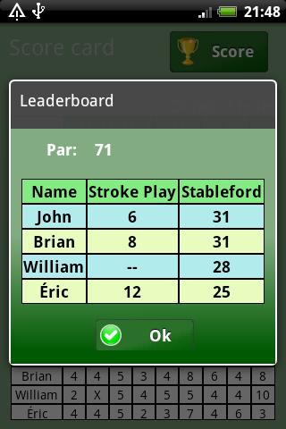 At the end of the course, a summary of all the different shots of players, is presented in a scorecard.
