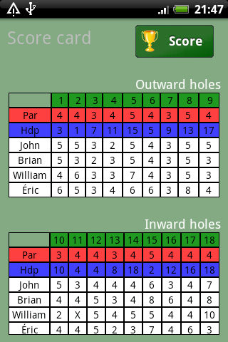 We are here to play and not to do math, here is a very intuitive scorer who will make your life easier on the course. It will record the score for four players simultaneously on a 9 or 18 holes.