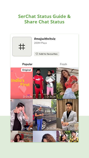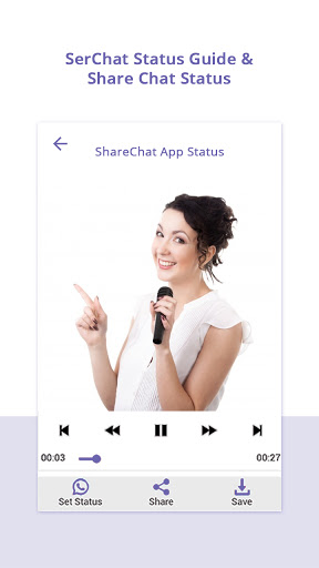 SerChat Status Guide & Share Chat Status is a Guide that walks you through ShareChat New app features, lets you understand how to use the app as a Pro. You can share videos, jokes, GIFs, audio songs and funny images from India in Indian languages like Hindi, Telugu, Marathi, Gujarati, Punjabi and Malayalam.