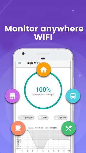 Wifi analyzer helps you to find good Wifi signal location and meshed current location signal strength use rssi level. It has 3 Measurement further rssi level, show rssi level as a percentage and also bottom chart shows signal level variation on last 10 second.