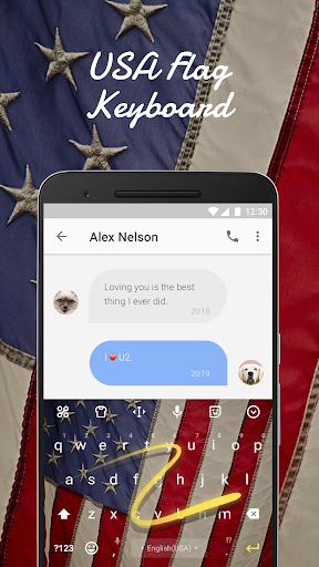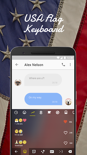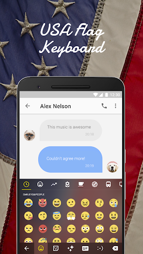 This USA Flag Emoji Keyboard Theme for Whatsapp uses Facemoji Keyboard