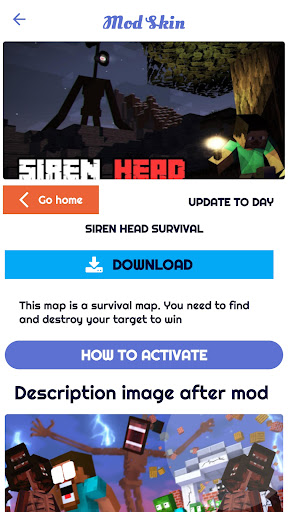 Siren Head Mod for Minecraft Pocket Edition is an application that give you the easiest way to install Siren Head Addon into your Minecraft world. With our 1-Click installer, you'll be able to download & install Minecraft Mods, Addons, Maps, Texture Packs, or Skins in only 1 single tap!