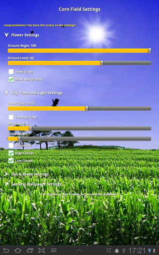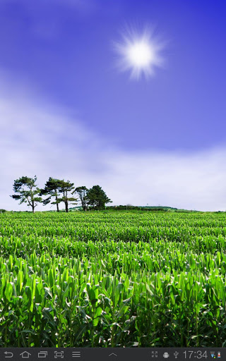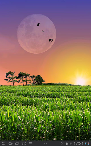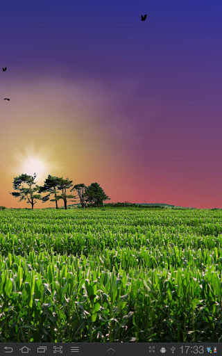 A live wallpaper request from a customer: a green cornfield swaying in the wind under a live sky with birds, sun, moon, stars and rushing clouds.