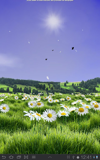 A field with lovely daisies swaying softly in the wind as petals fall like snow over the landscape. Full version have seamless transitions from day to night as the sun moves over the sky, and tons of settings for customizations.