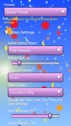 A Live wallpaper with lots of moving stylized flowers. You can custmize this with tons of settings, or choose from the presets. Some settings: