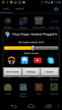 When the headphone plug is inserted, it shows a popup allowing you to set the media volume and launch an app from a list of quick-launch favorites.
