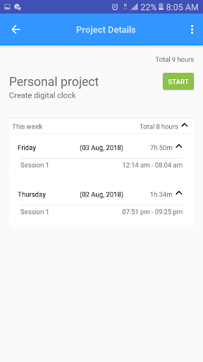 The app is extremely simple and user friendly, the performance is extremely good. You do not have to wait for long data processing like calculating total number of hours per day or per week. All those calculations are done in seconds, So, you can enjoy and improve your productivity using this app.