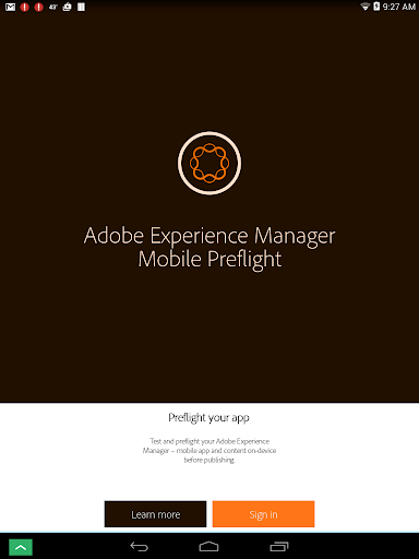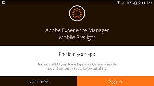 Adobe Experience Manager – Mobile Preflight allows you to test and preview your Adobe Experience Manager – Mobile app and content on-device, before you publish it. For use in the Adobe Experience Manager – Mobile workflow, this app helps you ensure your content appears the way you intended it when viewed on a device. You can also test app navigation, browse pages, interactivity and more — and iterate as necessary. The Adobe Experience Manager – Mobile Preflight app also enables collaborative workflows between clients and agency partners — allowing agencies to share apps and content, and clients to review as they’re produced.