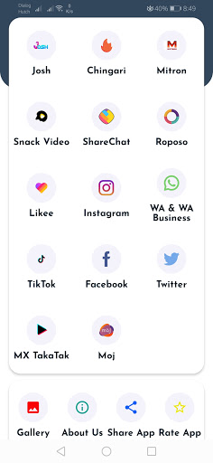 All in one Video Downloader app will help you to download any videos, status and images from Facebook, Instagram, Twitter, Whatsapp and Tiktok. You can also share the media that you downloaded to any app.