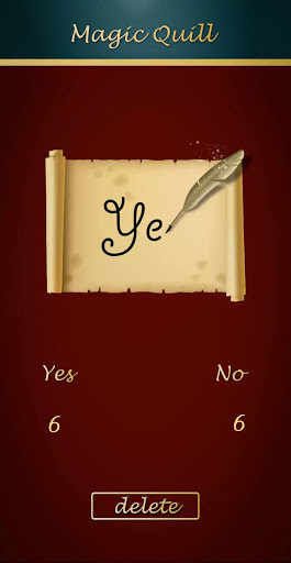 An animated quill writes the answer on a roll of parchment paper as if led by an invisible hand.