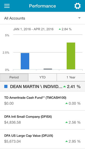 Review portfolio holdings, performance, estimated income, as well as other items related to accounts managed by Tevis Investment Management, LLC.