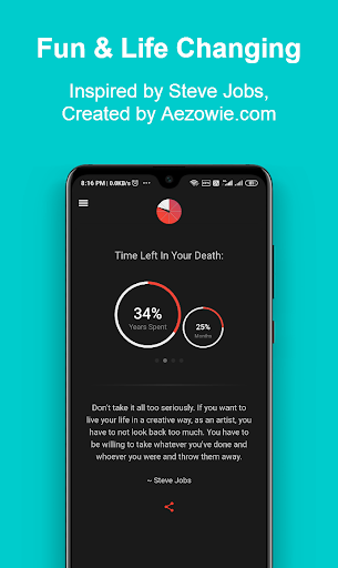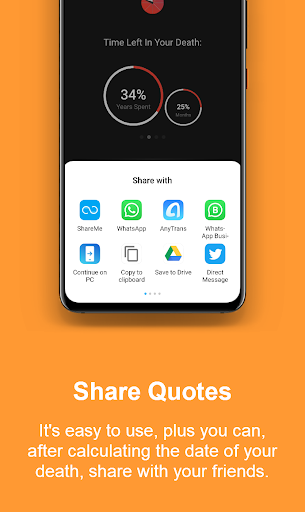 The Death Clock Pro is a fun and life changing app. It's easy to use, plus you can, after estimating the date of your death, share and laugh with your friends! It also shows daily life quotes that will remind you to do great work before your life ends. You will be asked questions about your lifestyle and according to your answers will be calculated the date of your death and time remaining.