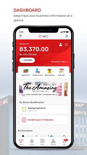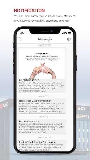 A member can easily receive push notification from AFC about latest important news , bonus earning notification , transaction notification & many more