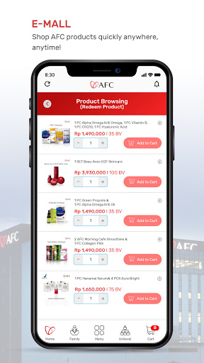 All AFC products can now be purchased globally using this mobile app for personal upgrade purchase , voucher reload , maintenance products and claims product.