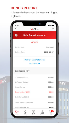 A report can be view easily using this mobile apps for tracking orders , view wallets statement , view bonus earning reports , downlines sales analysis and many more.