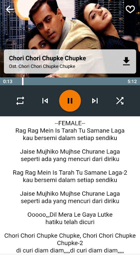 Aplikasi ini merupakan MP3 Musik Player yang berisi kumpulan lagu india dari Ost. Film Chori Chori Chupke Chupke Hai MP3 Offline lengkap dengan lirik lagu dan terjemah bahasa Indonesia.
