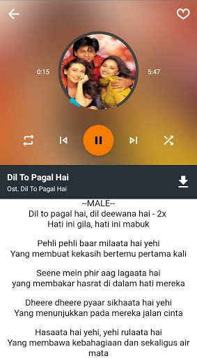 Aplikasi ini merupakan MP3 Musik Player yang berisi kumpulan lagu dari Ost. Film India Dil To Pagal Hai MP3 Offline lengkap dengan lirik lagu dan terjemahannya.