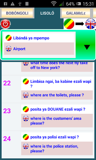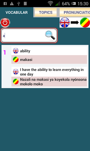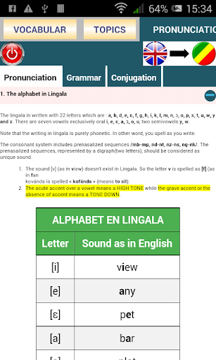 This translator contains more than 500 words tranlated from English to Lingala, and from Lingala to English. Most of the translated words are illustrated in the two languages.