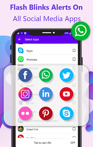 ► Flash Alert on notifications from Viber, Facebook, Messenger, Instagram, Skype, and Whatsapp.