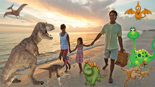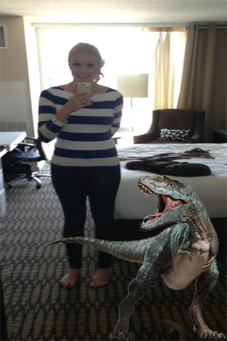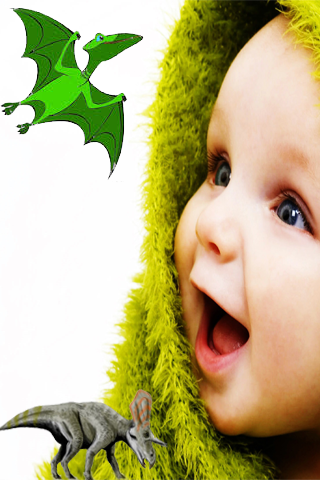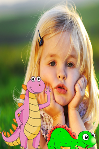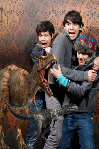 Take a photo using your camera Smartphone, then choose fierce, funny, cute, angry dinosaur from Dinosaur gallery, stick it on the your photo then send it.