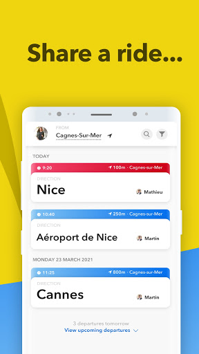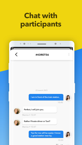 With JUUMP app you can share a trip (Private driver / Taxi) with others with users near you and ou can IMMEDIATELY get in touch with them.