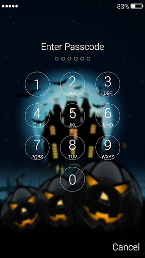 Halloween Lock Screen looks stunning on any phone! Each time you unlock your mobile you will feel the exquisiteness and uniqueness of this well-designed and powerfully lit lock screen. It makes the unlocking of your phone more fun and functional while providing complete protection from unwanted access. It allows you to set multiple lock screen and app locker methods like pass code to protect your privacy, but also show real time clock and date and customize your phone with a wallpaper screen you choose!