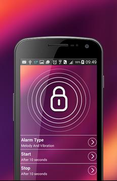 The anti-theft alarm system offers maximum protection for your android device against smartphones theft. Your phone will warn you with signals that attract your attention like vibration or releasing a loud ringtones when potential thieves or unauthorized people are touching your phone.