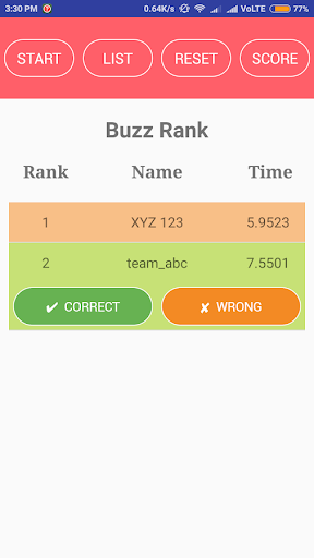 • Quiz Master is informed of ALL the teams buzzing in CHRONOLOGICAL time order.