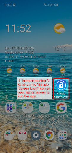 Click on the "Simple Screen Lock" icon on your home screen to run the app.