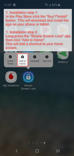 Long press the "Simple Screen Lock" app then click "Add to Home".