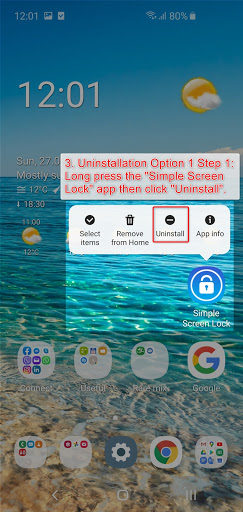 3.2.1.2. Go to “Settings” -> “Apps” -> Click on the “Simple Screen Lock” app -> Click “Uninstall” -> Click “OK”.
