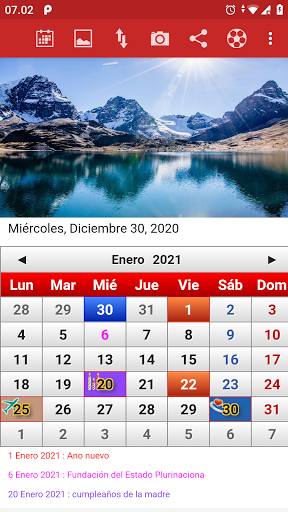 Toon vakanties in de huidige maand, zoals 2021.1. - U kunt ook het beeld van deze kalender wijzigen.