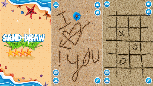 Sand Drawing can be used to send a romantic greeting or a few confessions to your loved friends and family, you can play Tic Tac Toe, Caro and other games with your friend or family, just draw whatever comes up on your mind! It's a fun drawing app! Draw as many drawings as you like then take a screenshot and share the beautiful photos via social network (facebook, twitter, google).