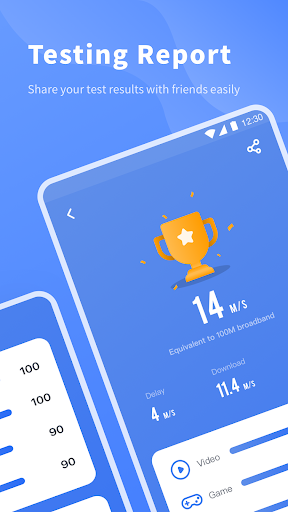 1. One-click test of broadband, Wi-Fi, 4G and 5G speeds to provide download speed, upload speed, delay, packet loss and jitter data;