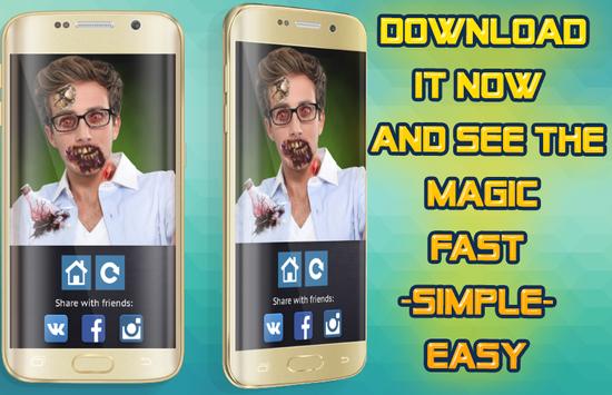 Now you have a chance to zombify yourself in a few easy steps, choose a picture from your phone gallery, or take a selfie with your camera, and start the journey to the best pics editing!