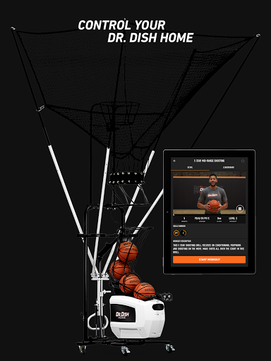 Use the Dr. Dish Player App to view your shooting analytics and trends, browse new workouts, and execute drills. When training on the Dr. Dish Home, control the machine with your phone or tablet while simultaneously tracking every made and missed shot. Training on a Dr. Dish develops muscle memory, improves shot arc, saves time, and provides unlimited access to on-demand shooting, dribbling, and agility drills.