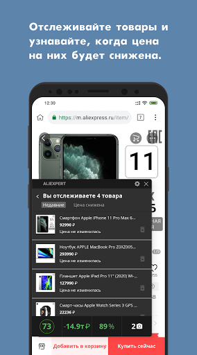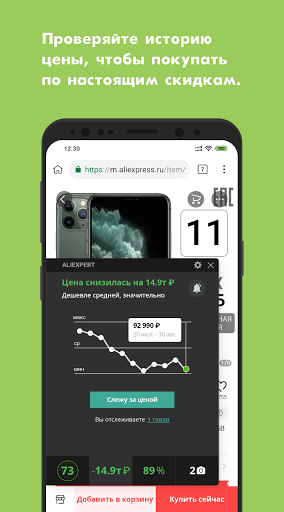يسعى العديد من البائعين على Aliexpress ™ لزيادة عدد المشتريات ، لذلك غالبًا ما يحملون عروض ترويجية مزيفة.وهذا يعني أن المنتج يرتفع بسرعة كبيرة في السعر ، ثم ينخفض ، وجذب العملاء الذين تم إجراؤهم حسب الخصومات.بفضل متصفح Ali ، يمكنك عرض ديناميات الأسعار بانتظام.بالإضافة إلى ذلك ، فإن الميزة الرئيسية لمتصفح Ali هي إحصائيات مفصلة ، باستخدامها يمكنك التأكد من موثوقية البائع وصدقه.هناك أيضًا الميزة الثالثة لمتصفح ALI ، الذي يتم إجراؤه في تلقي إشعارات خاصة ، إذا تم تقليل تكلفة البضائع المضافة إلى الناخبين.
